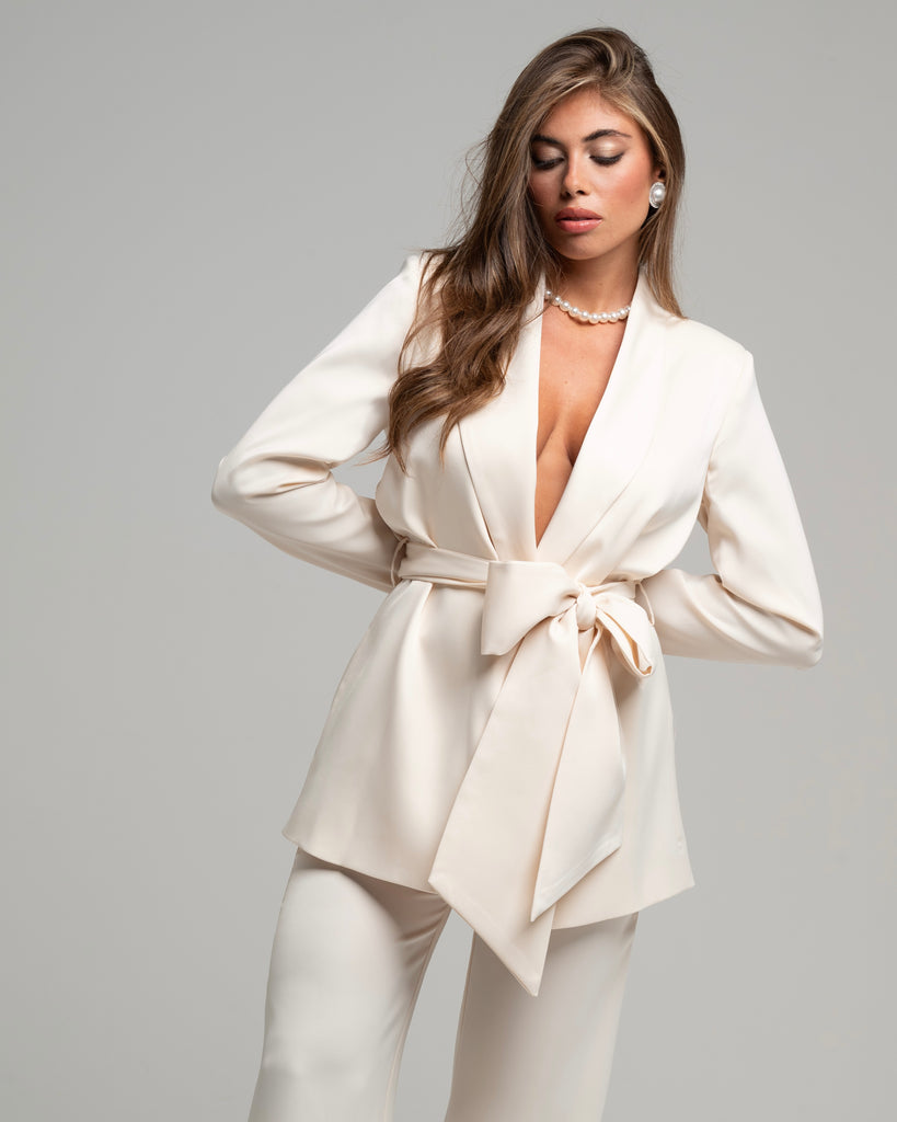 Blazer con cintura in vita e vestibilità regolare, maniche lunghe, interamente foderato con spalline.
