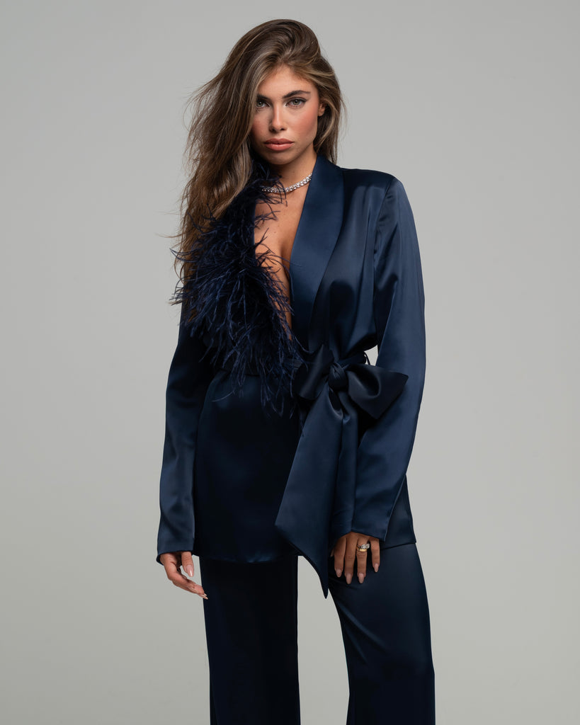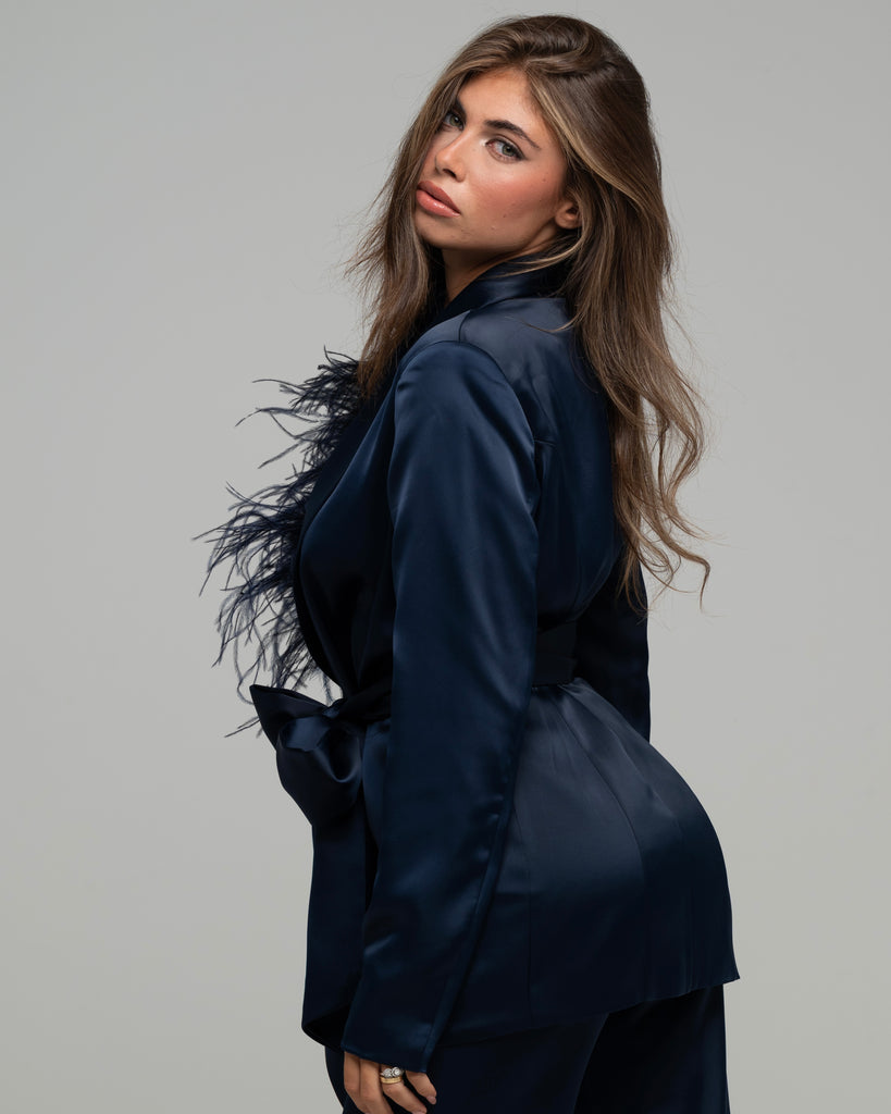 Blazer con cintura in vita e vestibilità regolare, maniche lunghe, interamente foderato con spalline.