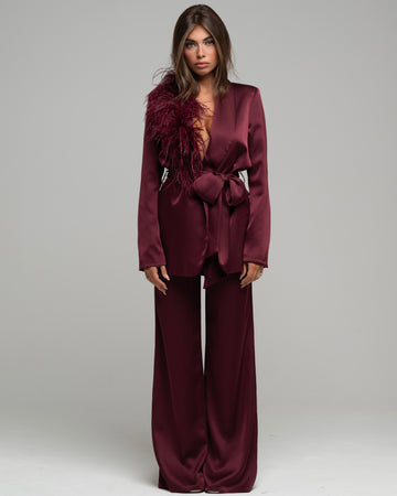 Pantalone vita alta morbido, gamba larga. Chiusura laterale con cerniera invisibile. La modella è alta 1,68 ed indossa la taglia S.