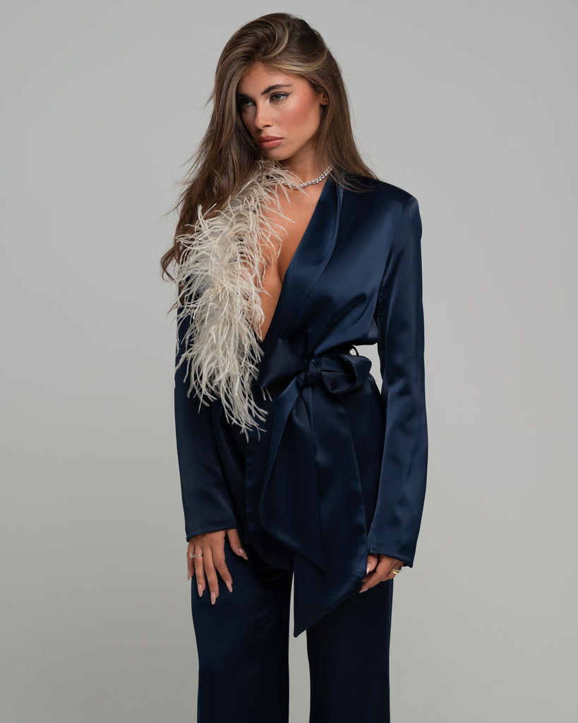 Blazer con cintura in vita e vestibilità regolare, maniche lunghe, interamente foderato con spalline.